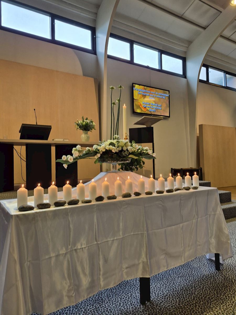 ![]() In de laatste zondag van het kerkelijk jaar op 23 november j.l., herdachten we de gemeenteleden die ons in het afgelopen jaar zijn ontvallen: ![]() | ||